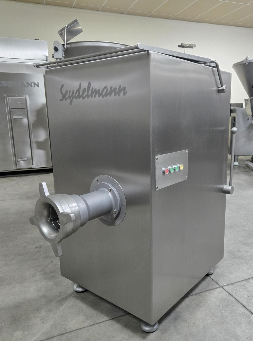 Волчок SEYDELMANN ME 130-предназначен для применения на небольших предприятиях.Две скорости работы:первая — для обработки свежего мяса и подмороженной продукции; вторая — для вареного сырья, печени, шпината и т.п