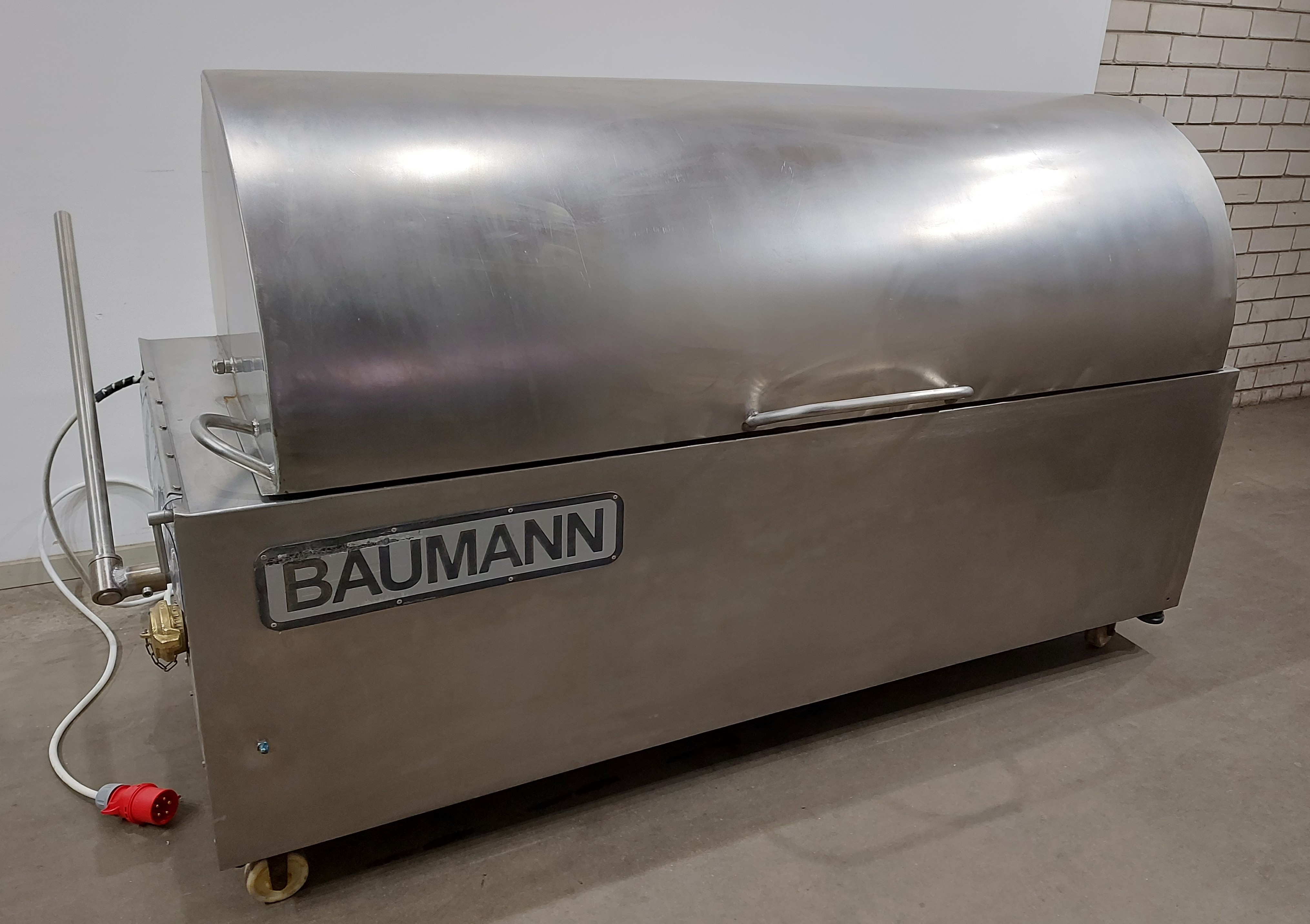 Машина для удаления щетины (шпарчан,скребмашина) Baumann BM 20 представлена компактным прочным корпусом из нержавеющей стали. Благодаря крепким колесикам ее можно быстро и легко перемещать по цеху. Внутри расположен чан, в который помещается тушка, вал для удаления щетины и ее улавливатель. Нагрев воды осуществляется с помощью электрических ТЭнов.